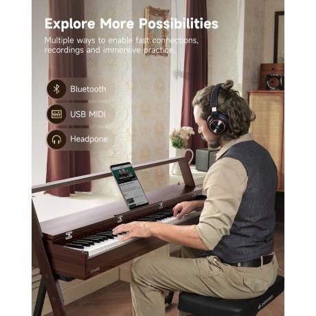 Gerçek Kuyruklu Piyano Hissi: Kademeli hammer standart klavye, akustik bir piyanonun gerçek dokunuşunu ve tepkisini yansıtmaktadır.