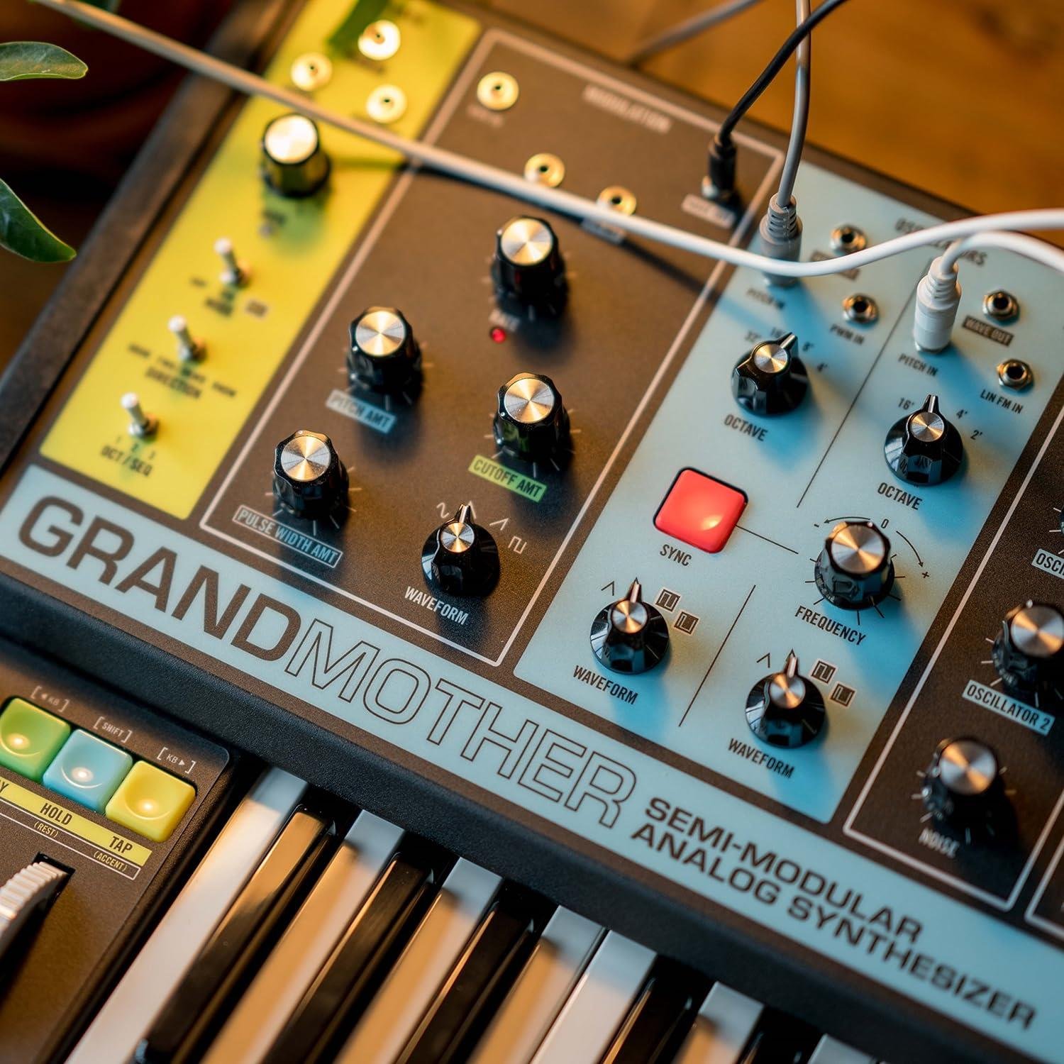 Grandmother, arpeggiator, sequencer ve spring reverb tankına sahip yarı modüler bir analog synthesizer’dır. “Patch ihtiyacı olmadan” hemen performansınıza başlayabilir ve ardından Grandmother’ın yeniden yapılandırılabilir ön paneli ile sonsuz özellikli performans alanını keşfedebilirsiniz. Grandmother’ın devreleri, spring reverb ve ruhu, klasik Moog Modüler Synthesizer'lardan esinlenerek, bu enstrümanı bir Mother-32, DFAM veya herhangi bir Eurorack modüler sistemine güçlü bir şekilde eklemektedir.