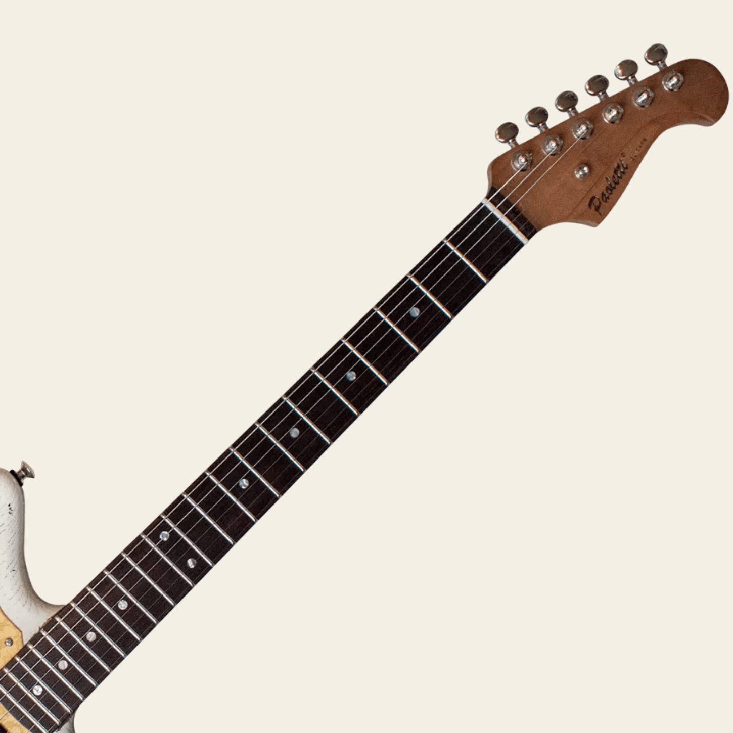İşte karşınızda 112 Lounge HP90 – 410 Heavy White: Roasted Maple sap, Ebony fretboard ve Paoletti OEM donanımla donatılmıştır.