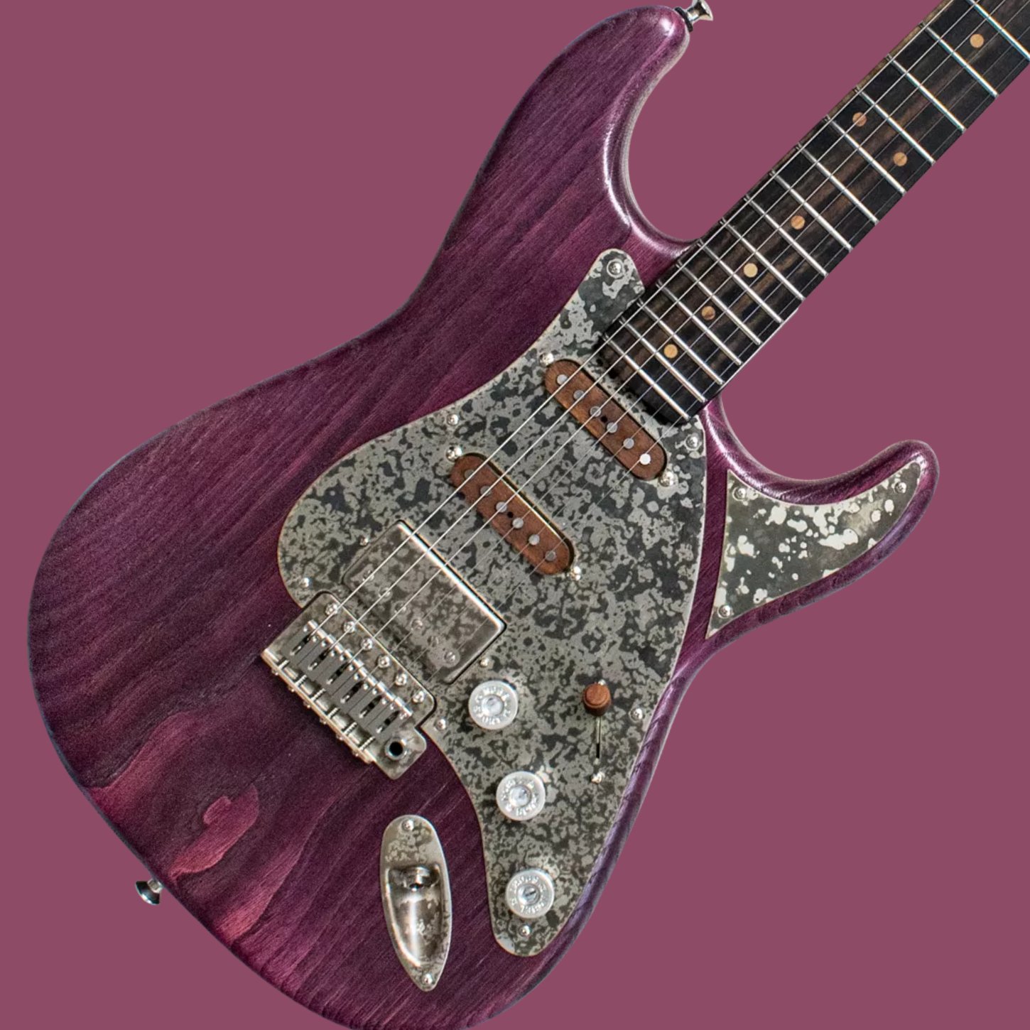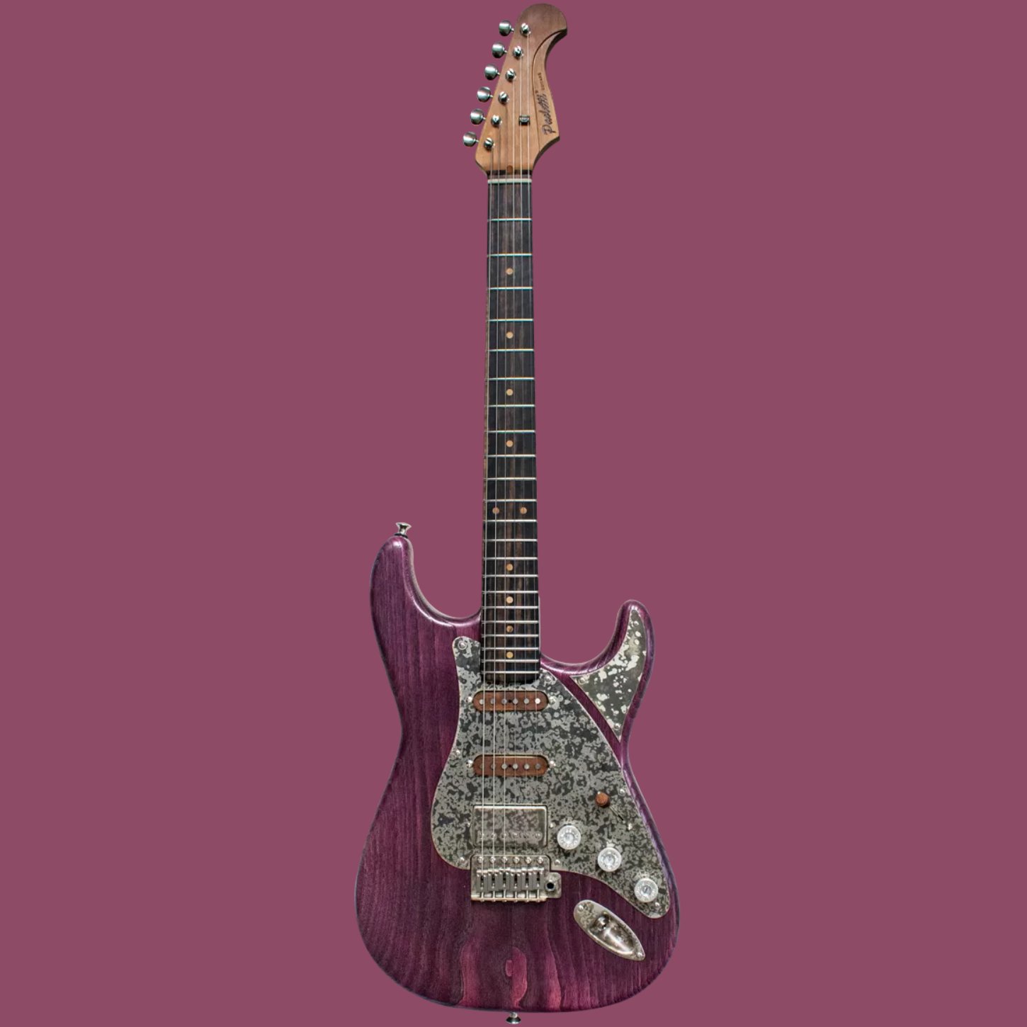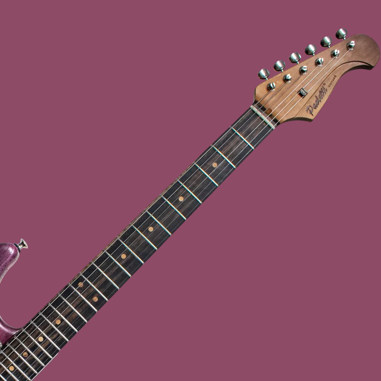 İşte Roasted Maple, Tremolo Bridge ve Paoletti Nickel-plated OEM hardware ile donatılmış bir Paoletti Alfa Chianti Wine HSS modeli.