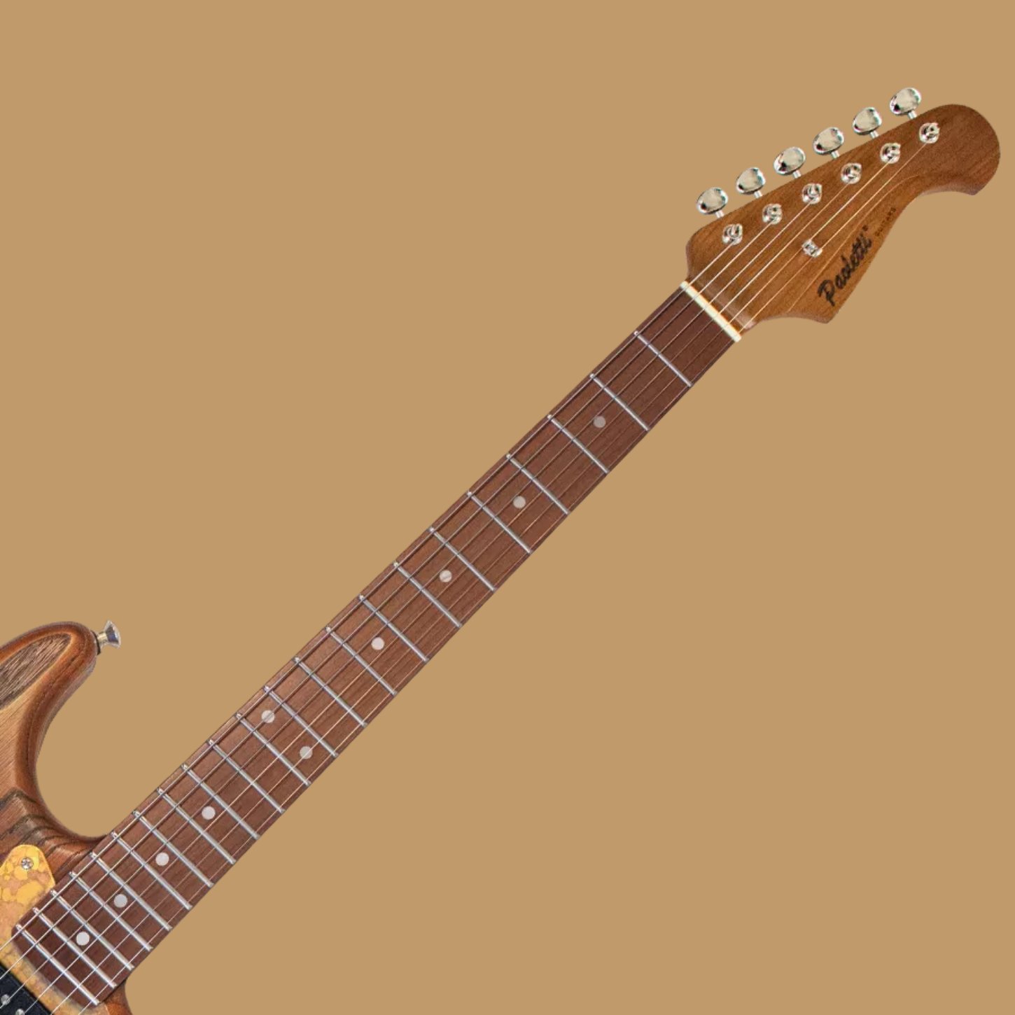 Paoletti gitarlarını benzersiz kılan en önemli unsur, eski şarap fıçılarımızdan özenle korunup geri kazanılan yaşlandırılmış kestane ağacının kullanımıdır. Kestane gövdenin ürettiği titreşimler; frekans, armoni ve tonal sustain açısından eşsizdir ve tüm armonik spektrum boyunca zengin bir ton yelpazesi sunar.
