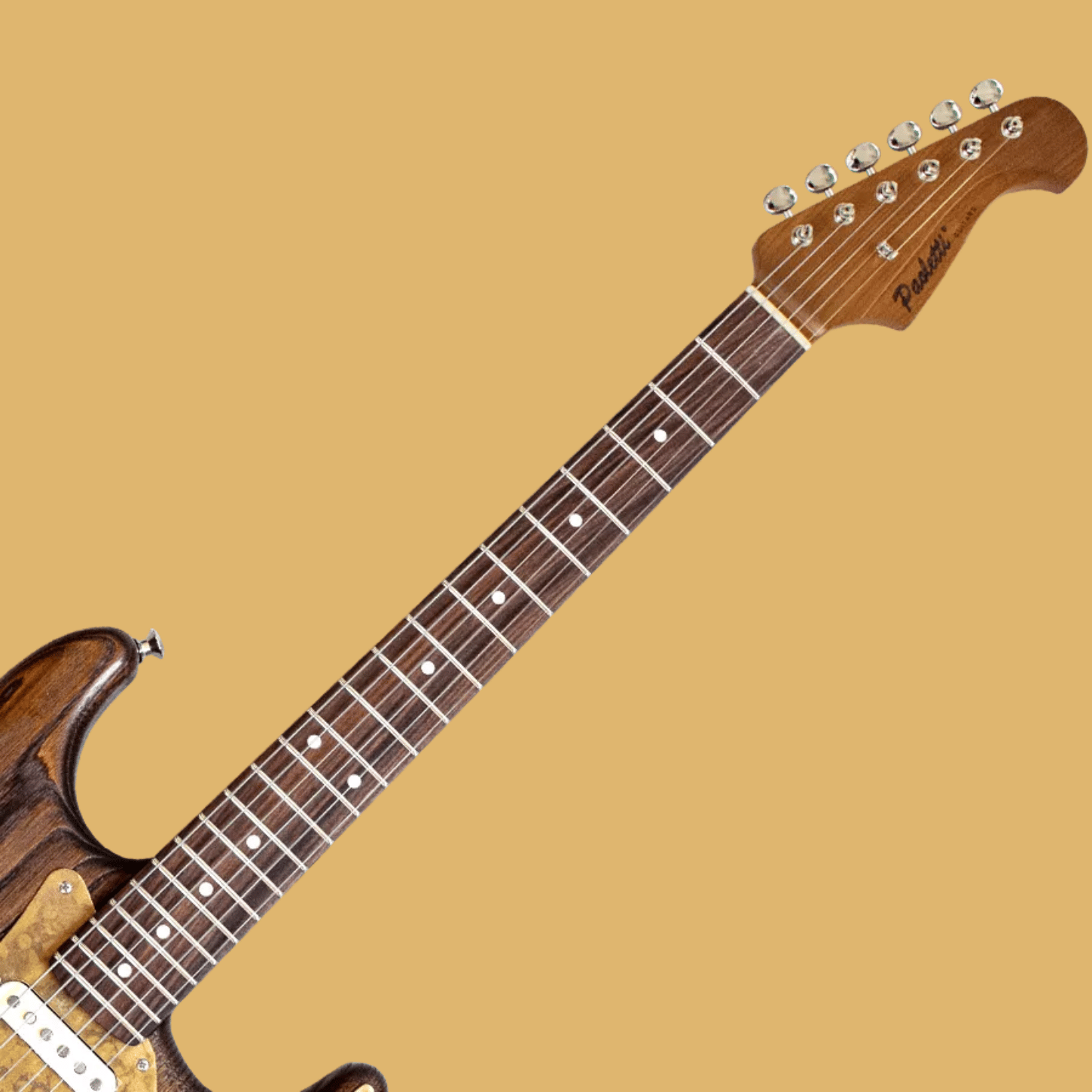 Karşınızda: Roasted Maple neck, Tremolo Bridge ve Paoletti'nin kendi üretimi olan OEM hardware ile donatılmış bir Paoletti Alfa Wine HSS.