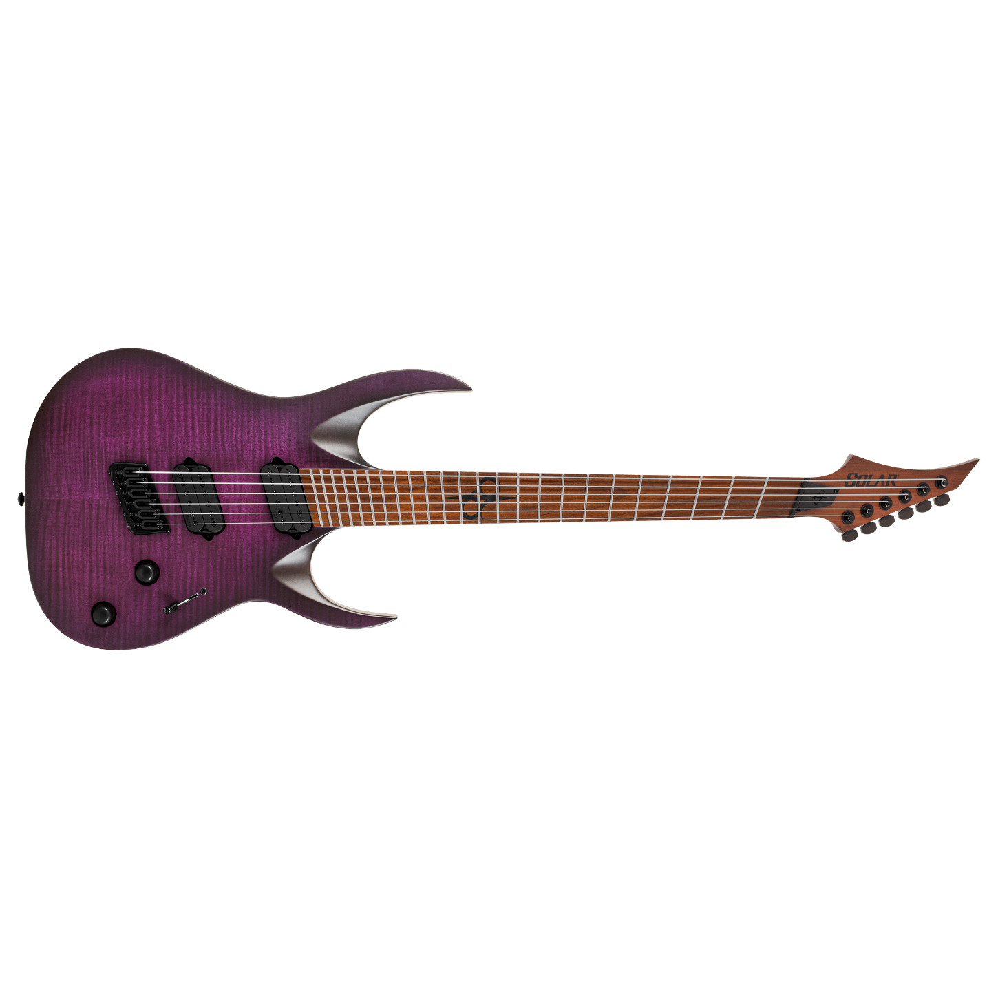 Bu A1.6FDPB-FF altı telli fanned fret gitar; gizli ve agresif görünümü, özgün kesimli gövde yapısı ve dikkat çekici özellikleriyle sahne ve stüdyo için kusursuz, profesyonel ve son derece hassas bir enstrümandır. Hipshot multi scale köprü sistemi sayesinde hassas entonasyon ve artırılmış çalım konforu sunar. Solar-FF manyetikleri ise organik clean tonlardan yoğun drive’lı tonlara kadar geniş bir yelpazede netlik ve akıcılık sağlayan bir sustain sunar. Type A1.6DBOP-FF modeli; 24,75 ila 26 inç multiscale set-thru sap/gövde birleşimi, flame maple kaplamalı maun gövde, hızlı, ince ve konforlu fırınlanmış akçaağaç sap, 24 süper jumbo paslanmaz çelik perdeye sahip fırınlanmış akçaağaç klavye ve sahne kullanımı için karanlıkta parlayan Luminlay yan noktalar ile donatılmıştır. Solar 18:1 kilitli burgular, PPS üst eşik, beş yönlü bıçak tipi manyetik geçiş anahtarı ve tam erişimli sap yapısı ile birlikte gelir. Flame deep purple burst matte (alevli derin mor patlama mat) renkte sunulmaktadır.