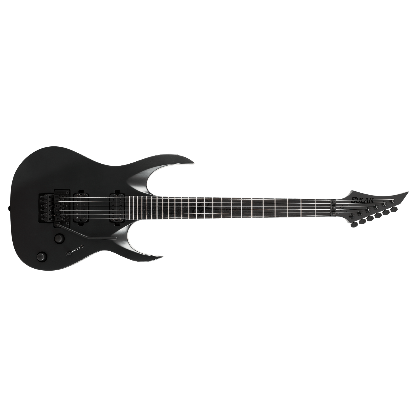 Bu Type A1.6FR Svart+ altı telli gitar, gizli bir görünüme, ayırt edici bir cutaway oyuk tasarımına ve olağanüstü bir özellik setine sahip olup, hem sahne hem de stüdyo çalışmaları için nihai, hassas ve profesyonel bir enstrümandır. Dayanıklı Floyd Rose 1000, sertleştirilmiş çelikten yapılmış olup, büyük boyutlu bir blokla birleşerek arttırılmış sustain ve rezonans sağlar; tüm tremolo yayları mekanik olarak susturulmuştur. Ayrıca, Alnico VIII mıknatıslarıyla donatılmış yeni tasarlanmış Duncan Solar+ (Plus) yüksek kazançlı manyetiklere sahiptir, maksimum etki, grind ve agresyon sağlar. Type A1.6FR Svart+ modeli, 25,5” skala, alder gövde, hızlı, ince ve konforlu maple sap, 24 süper jumbo paslanmaz çelik perde ve kolay sahne kullanımı için Luminlay 'karanlıkta parlayan' yan işaretler ile ebony perdetahtasına sahip set-thru neck/body eklem tasarımına sahiptir. Solar 18:1 kilitli makara, kilitli nut, beş yönlü blade manyetik anahtarı ve full access neck ile donatılmıştır. Karbon siyahı mat yüzeyde mevcuttur.