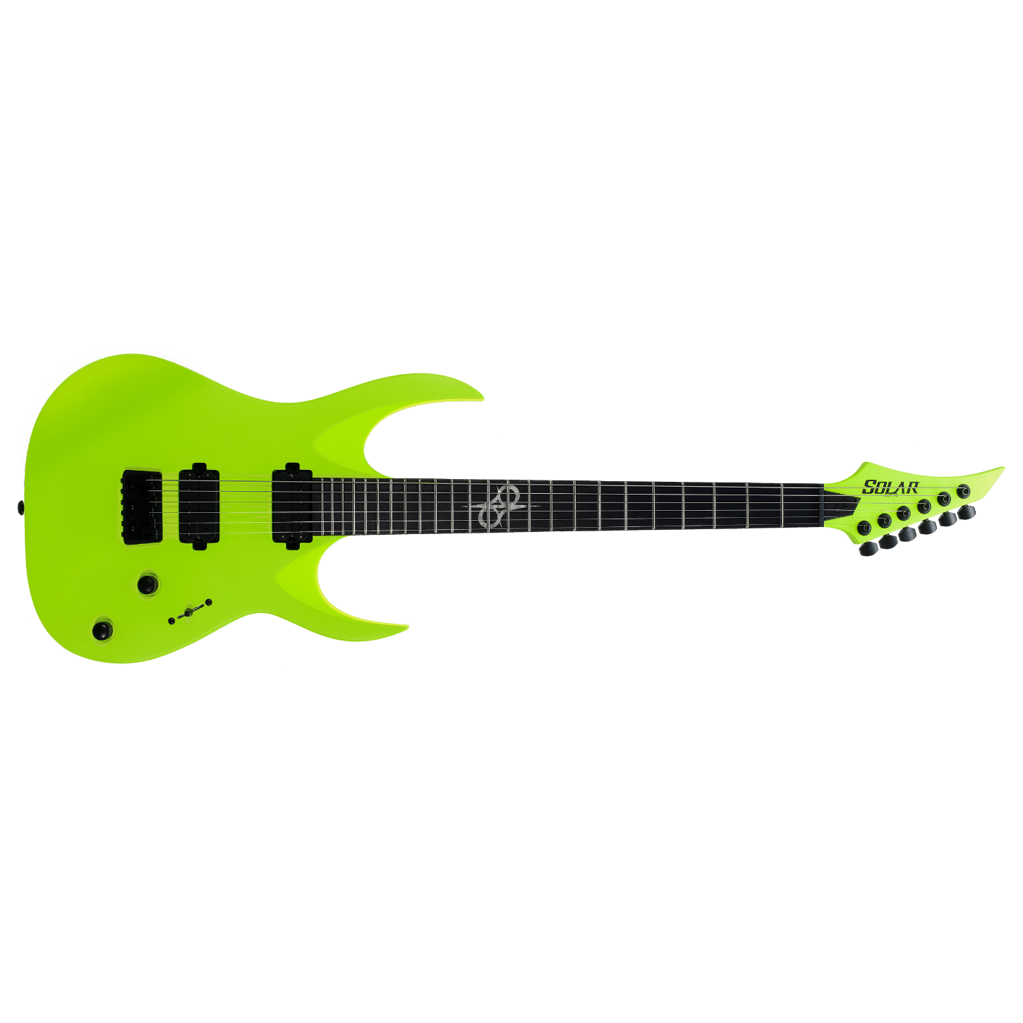Bu Type A2.6LN altı telli gitar; gizemli görünümü, karakteristik cutaway oyuğu ve etkileyici özellikleriyle hem sahne hem de stüdyo çalışmaları için hassas ve profesyonel bir enstrüman olmayı başarıyor. Güvenilir bir string-through-body hardtail köprü ve tam tonal spektrum sunan, organik clean tonlardan yoğun distortion'a kadar akıcı sustain ve maksimum berraklık sağlayan bir çift Duncan Solar manyetikle donatılmıştır. Type A2.6LN modeli, set-thru sap/gövde birleşim tasarımına, 25.5 inç skala uzunluğuna, maun gövdeye, hızlı, ince ve konforlu akçaağaç sapa ve 24 adet süper-jumbo perdeye sahip gül ağacı klavyeye sahiptir. Solar 18:1 burgular, PPS üst eşik, mat siyah donanım, beş konumlu bıçak tipi manyetik geçiş anahtarı ve tam erişimli sap yapısı da özellikleri arasındadır. Lemon neon mat (neon limon mat) renkte sunulmaktadır.