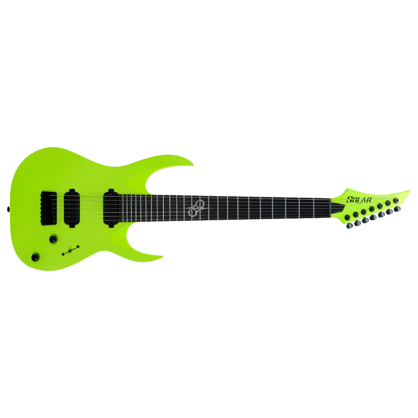 Bu Type A2.7 – Lemon Neon Matte yedi telli gitar, gizemli görünümü, karakteristik kesik hatlı tasarımı ve etkileyici özellikleriyle sahne ve stüdyo kullanımı için son derece hassas ve profesyonel bir enstrüman sunuyor. Sağlam bir string-through-body hardtail köprü sistemi ve geniş ton aralığı sunan Duncan Solar manyetiklerle donatılan bu model, temiz tonlardan yoğun distorsiyonlara kadar her seviyede akıcı sustain ve maksimum netlik sağlıyor. Type A2.7 modeli, set-thru sap-gövde birleşimi, 26.5 inç skala uzunluğu, maun gövde, hızlı ve ince tasarlanmış rahat bir akçaağaç sap ve 24 adet süper jumbo perdeye sahip gül ağacı klavye ile üretilmiştir. Ayrıca Solar 18:1 burgular, PPS üst eşik, siyah mat donanım, beş konumlu switch ve tam erişimli sap tasarımına sahiptir. Lemon Neon Matte renk seçeneğiyle sunulmaktadır.