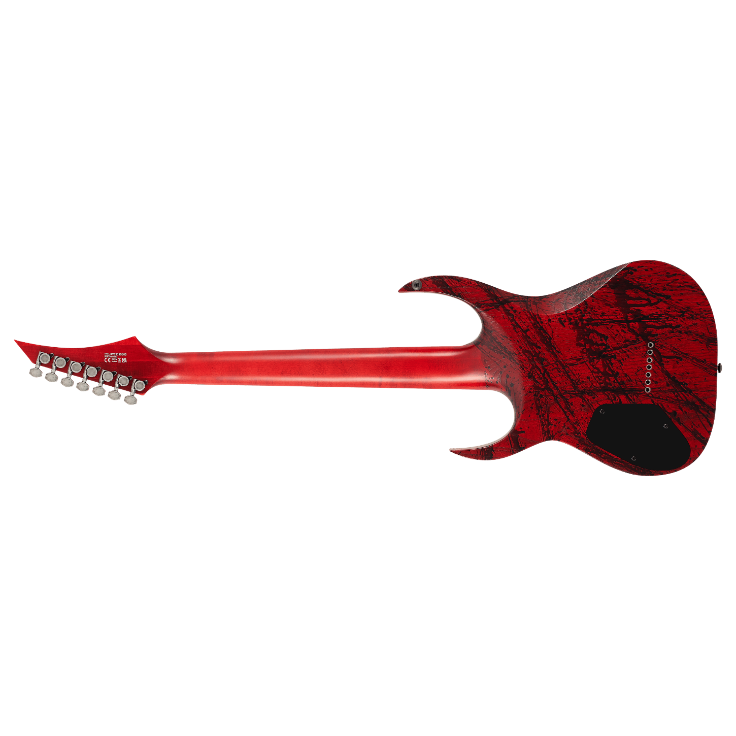 Bu Type A2.7CANIBALISMO+ yedi telli gitar, gizemli bir görünüme, karakteristik bir cutaway oyuntusuna ve dikkat çekici özelliklere sahiptir. Sahne ve stüdyo kullanımı için hassas ve profesyonel bir enstrüman olarak tasarlanmıştır. Güvenilir bir string-through-body hardtail köprü ile donatılmıştır. Ayrıca, maksimum etki, sertlik ve agresif tonlar için Alnico VIII mıknatıslara sahip yeni tasarlanmış Duncan Solar+ (Plus) yüksek çıkışlı manyetikleriyle donatılmıştır. Type A2.7CANIBALISMO+, set-thru sap/gövde birleşimi tasarımı, 26.5” skala uzunluğu, sungkai ağacından gövde, hızlı, ince ve rahat bir akçaağaç sap ve 24 süper-jumbo perdeye sahip bir gül ağacı klavye sunar. Solar 18:1 burgular, PPS üst eşik, eskitilmiş antik siyah donanım, beş yönlü switch ve tam erişimli sap yapısıyla birlikte gelir. Kan kırmızısı açık gözenekli mat ve kan sıçramalı özel bitişiyle sunulmaktadır.
