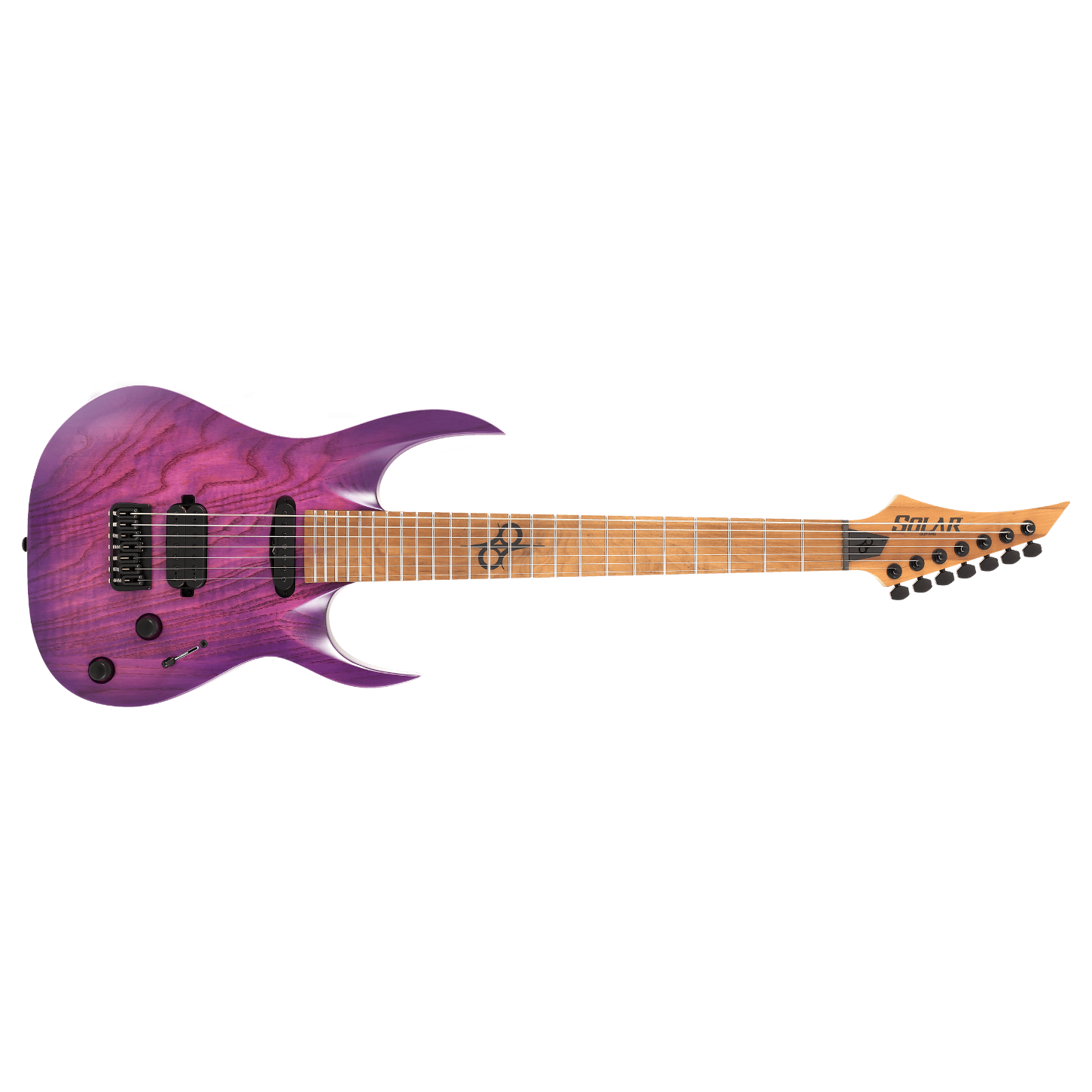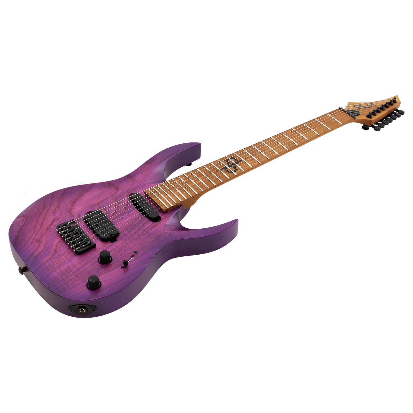 Bu Type AB1.7HTPB yedi telli bolt-on gitar, gizemli bir görünüme, belirgin bir cutaway scoopa ve dikkat çekici özelliklere sahip olup, sahne ve stüdyo çalışmaları için kusursuz, hassas ve profesyonel bir enstrümandır. Bu gitar, Hipshot USA sabit köprüye ve organik temiz tonlardan yoğun distorsiyonlu seslere kadar geniş bir tonal seçenek yelpazesi sunan Duncan Solar manyetiklere sahiptir; tüm bunlar akıcı sustain ve maksimum netlik ile desteklenir. Type AB1.7HTPB, 25.5” skala uzunluğuna sahip bolt-on sap birleşimi tasarımı, bataklık dişbudak (swamp ash) gövde, hızlı, ince ve konforlu kavrama sağlayan kavrulmuş akçaağaç (roasted maple) sap ve klavye ile birlikte gelir. Üzerinde 24 adet süper-jumbo paslanmaz çelik perde ve sahnede kolay kullanım için Luminlay ‘karanlıkta parlayan’ yan işaretler bulunur. Solar 18:1 kilitli burgular, PPS eşik, 3 yollu bıçak tipi manyetik seçici ve seri/paralel geçiş için push-pull özellikli ses ve ton kontrolleri ile donatılmıştır. Trans purple burst mat bitiş ile sunulmaktadır.