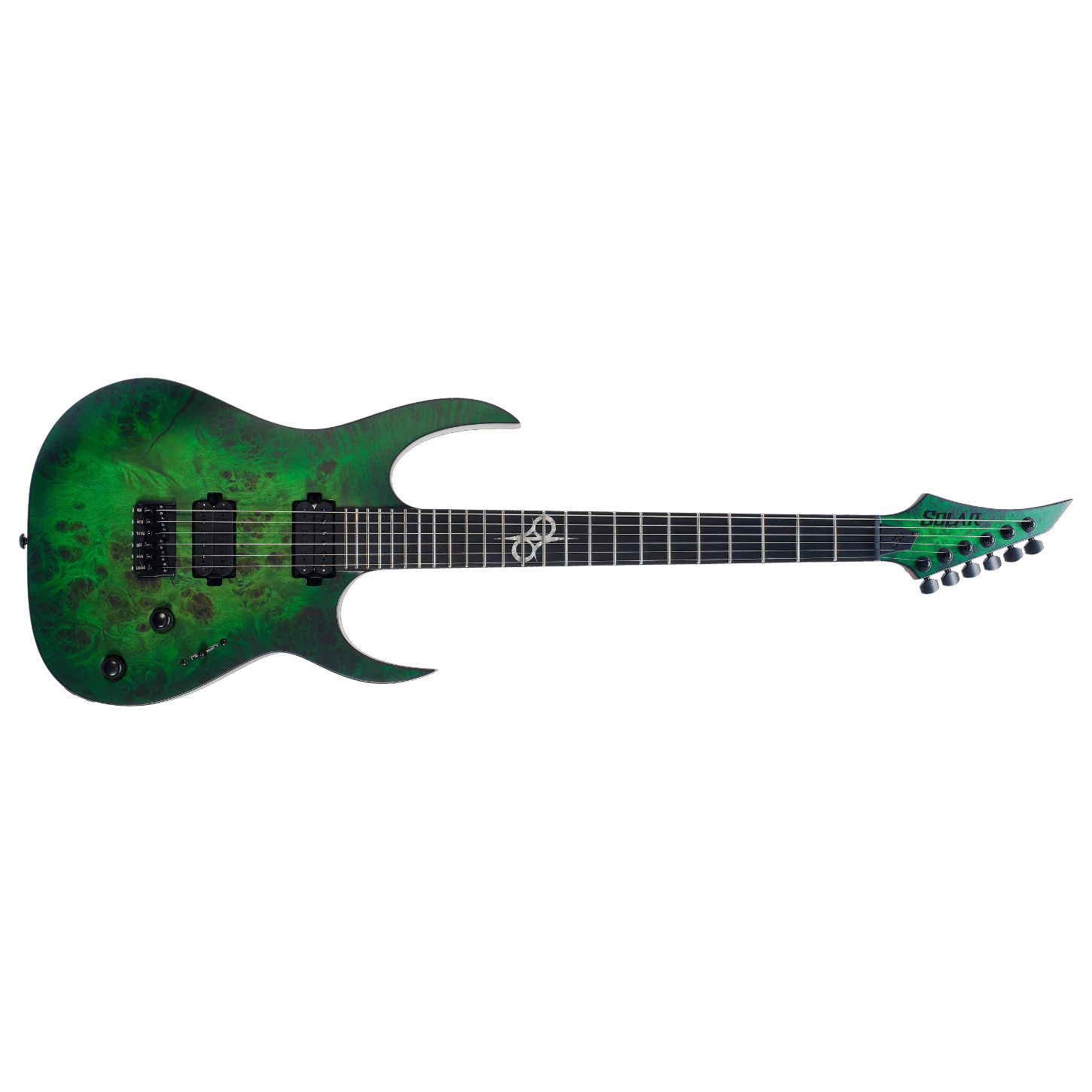 Bu Type S1.6 Poplar Burl gitar, sahne ve stüdyo kullanımına uygun, hassas ve profesyonel bir enstrüman olarak, özel işçilik, ustalık ve detaylara gösterilen özenle dikkat çekici özellikleri bir araya getirir. Bu S1.6 modelinde, ABD yapımı Hipshot köprü ve geniş ton yelpazesi sunan Duncan Solar manyetikler bulunur. Bu manyetikler, doğal temiz tonlardan yoğun distorsiyona kadar netlikten ödün vermeden uzun sustain sağlar. Type S1.6 gitar, 25.5 inç skala uzunluğuna sahip neck-through yapıda üretilmiştir. Gövdesi siyah kenar bantlı maun ağacı üzerine poplar burl kaplamaya sahiptir. Sapı hızlı çalım için tasarlanmış ince C formunda, 5 katmanlı maun/jatoba kombinasyonudur. Klavyesi abanoz ağacındandır ve 24 adet süper jumbo paslanmaz çelik perdeye sahiptir. Luminlay karanlıkta parlayan yan nokta işaretleri sahne kullanımı için kolaylık sağlar. Gitar, Solar 18:1 kilitli burgular, PPS eşik, beş kademeli bıçak tipi manyetik geçiş anahtarı ve tam erişimli sap tasarımı ile donatılmıştır. Lime burst matte (mat limon yeşili) renkte sunulur.